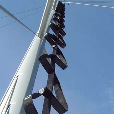 Conseils d'utilisation : Pour monter dans votre mât, utilisez la drisse de grand-voile ou de spi pour hisser l'échelle. Assurez-vous de bien fixer l'échelle au pied de mât pour une stabilité optimale. En utilisant le harnais de travail et l'anti-chute, vous pourrez vous déplacer latéralement et vous reposer confortablement en toute sécurité lors de vos travaux en hauteur.